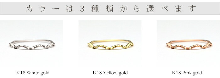 地金素材 K18イエローゴールド or K18ピンクゴールド or K18ホワイトゴールド リング幅 約0.8mm 厚み:約1.25mm リングサイズ 0〜7号 生産国 made in JAPAN. その他 ・ピンキーですがファランジリングにもおすすめなんです。